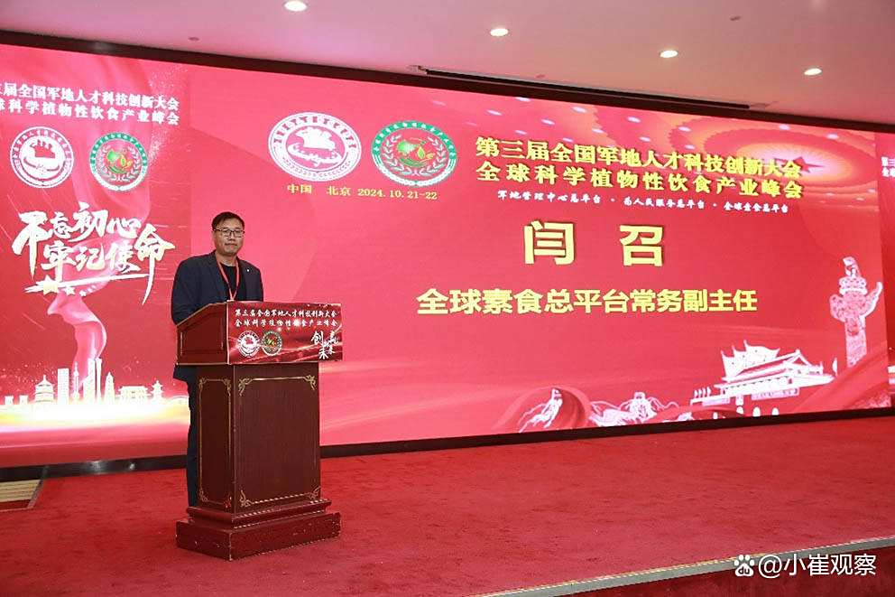 大会“以人才实力和新质生产力助力强国强军建设,以推动植物饮食品牌产业和优秀素食餐饮发展提振内需消费”为主题。此次会议是军地管理中心总平台、为人民服务总平台、全球素食总平台在连续主办了五月份第二届全国军地健康产业大会、全球植物性饮食发展与安全大会及七月份全球科学植物饮食大会、健康中国青少年军校大会之后,再一次举办的推动军地事业和植物性饮食产业发展的延续性大会。