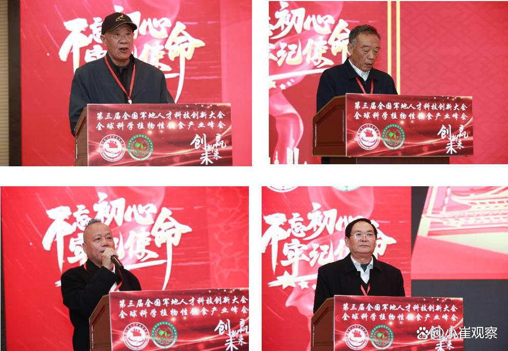 国家特级飞行员、某集团军原装备部潘茂生部长为大会致开幕词。他指出:军地人才科技创新大会作为军地管理中心总平台和为人民服务总平台的品牌会议,已经成功举办了三届,旨在全面贯彻落实党的二十届三中全会精神,汇聚人才力量推动强国强军建设,特别是为推动退役军人就业创业,植物性饮食产业健康发展,做实实在在落地事情。从而引领全民树立大国家观、大食物观,大健康观。引领带动5700万退役军人,听党话,跟党走,永做共和国忠诚卫士,用实际行动展现当代军地人才风采,用创新驱动的新质生产力促进中国式现代化发展。